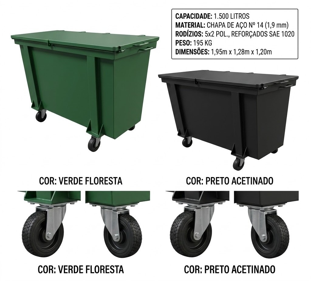 CONTAINER LIXEIRA DE AÇO 1500L